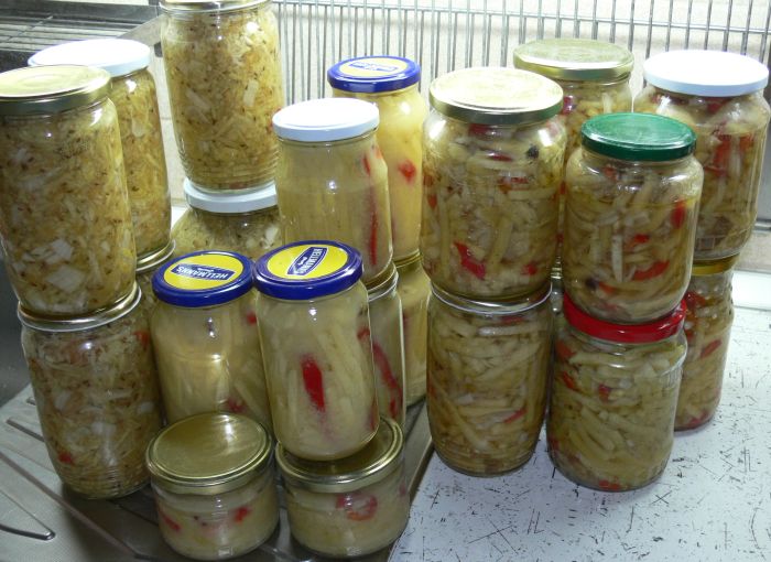 A po. Zleva doprava: sterilované trombové zelí, tromby v hořčici, trombové pepřenky