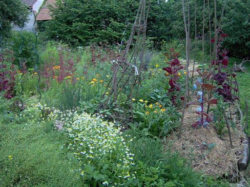 Vlevo na fotce je záhon druhým rokem v provozu, tak už je dost slehlý. To modré jsou uříznuté pet-lahve, které jsem tam původně dala jako zásobníky vody, jenže pak jsem stejně byla líná tu vodu doplňovat, tak jsem ty petky zase vyndala a teď už dělám vyvýšené záhony bez nich. Sice mi všichni tvrdí, jak vysoké a vyvýšené záhony děsně vysychají a musejí se furt zalívat, ale mně přijde, že když jsou při založení dostatečně promočené a pak pořádně zamulčované, vodu si udrží a roste to na nich i bez zalévání.