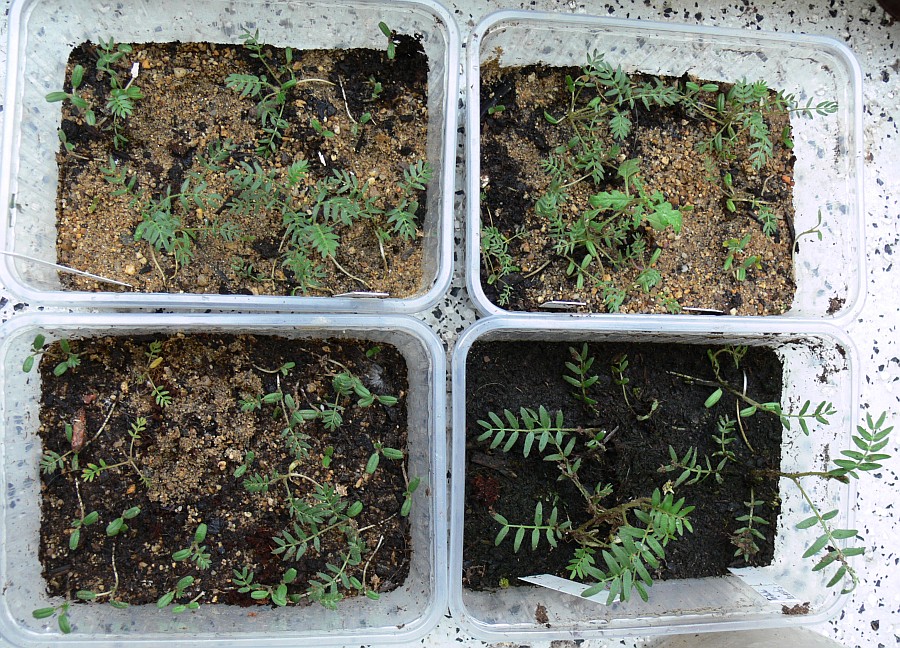 Sázíme do plastových vaniček od salátů, myslím že mají objem 500 ml. První dávku jsem vysela do kokosu, vzešlo jich pár a nějaký odešly. Nedávno jsem je přesazovala, protože ten kokos jim evidentně už nedělal dobře. Další čtyři vaničky jsou zemina s pískem, písku bylo víc. Tam rostou a tam klíčilo nejvíc těch "nových". Jedna vanička je v kupované zemině a tam jsou největší, ale nejvíc utrpěly zaplavením nedávnými přívalovými dešti.