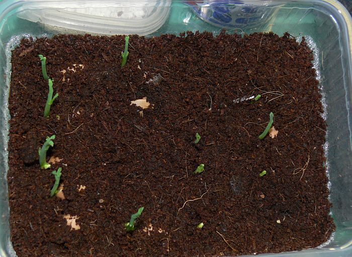 Někde píšou, že se mají nechat volně položené a rosit. Máme jednu pokusnou vaničku, stejnou jako nahoře, ale zasypanou a tam už lezou taky. Ale byly už naklíčený, takže nevím. Každopádně by neměly asi být moc hluboko.