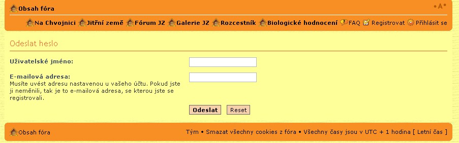 Vážení uživatelé! Pokud se vám stane že zapomenete heslo, pod kterým jste se registrovali, administrátoři vám ho nemohou poslat, neboť je pro nás nedostupné. Na řešení takových případů je pod přihlašovacím formulářem klikací odkaz Zapoměl/a jsem heslo. Nejprve tedy klikněte na Přihlásit na horní liště a poté na Zapoměl/a jsem heslo (viz obrázek). Po kliknutí na odkaz se rozbalí formulář, kam vyplníte svoje uživatelské jméno a mailovou adresu, pod kterou jste se přihlásili. Formulář odešlete a systém vám automaticky vygeneruje nové heslo které odešle na zadanou mailovou adresu.