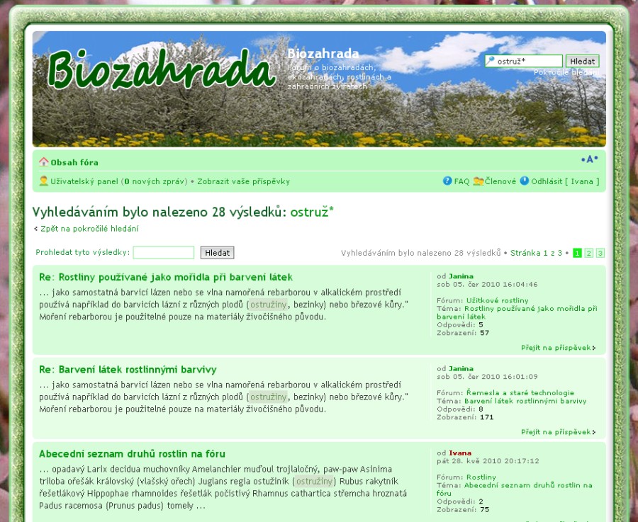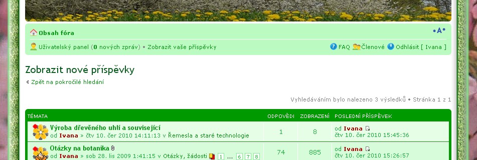 Pokud je fórum svéhlavé a nechce vyhledat třeba výraz "bambusy" jak jsem před chvílí zjistila, pomůže zadat bambus nebo bambus*.