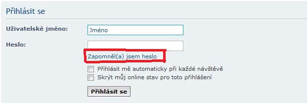 Zobrazte přihlašovací formulář, vyplńte jméno a klikněte na Zapoměl(a) jsem heslo. Na emailovou adresu zadanou při registraci přijde mail s vygenerovaným novým heslem. Z důvodů bezpečnosti neznají ani administrátoří vaše hesla, toto je jediný způsob.