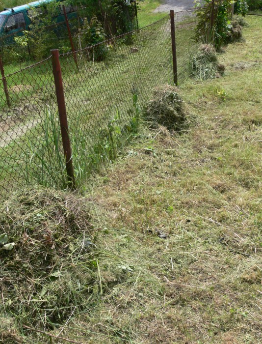 2. Při kosení strunovkou (anebo i kosou) připravit o týden dřív na plochu hromádky trávy, aby si měli slepýši kam zalézt. Zvuky neslyší, takže tak se zahnat nedají, vibrace sice vnímají, ale na rozdíl od hadů je většinou nemotivují ke změně úkrytu.