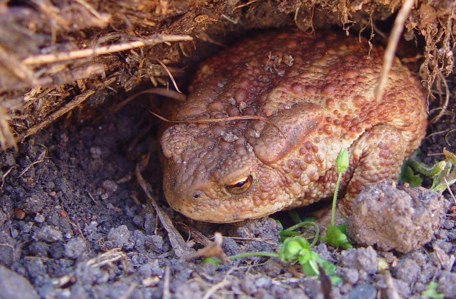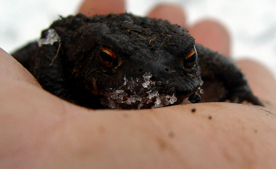 Loňský rok si pamatuji jako rok žab. Po intenzivních deštích, které u nás byly od poloviny května až do začátku srpna, se všude na zahradě vyrojily malé ropuchy obecné, sem tam rosnička nebo hnědý skokan. Ropucha úžasně splývá s povrchem půdy, je třeba dávat dobrý pozor při práci. Také ráda zaleze do hustšího porostu - mám v zeleninových plochách kameny a kolem nich vysázenou meduňku. Tam jsou schovaní slimáci (aspoň se dají snadno sbírat), ale i ropuchy. Na zahradě nemám žádnou vodní plochu, ani cca půl kilometru kolem žádná není, ale vlhká jílovitá půda a letní vegetační džungle se žábám dost líbila :)