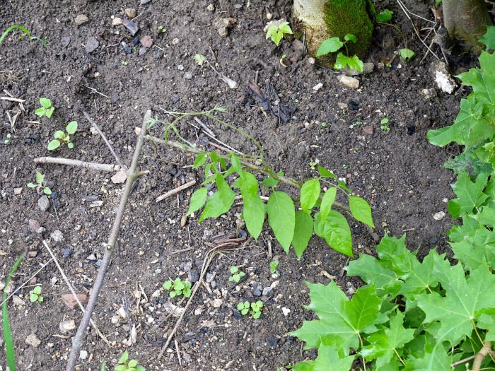 Apios mi přijde jako velmi nevhodný do smíšených záhonů, zarůstá do kořenových systémů jiných trvalek a keřů, velmi se rozůstá, hlízy nacházím 1-2m daleko od původní hlízy.