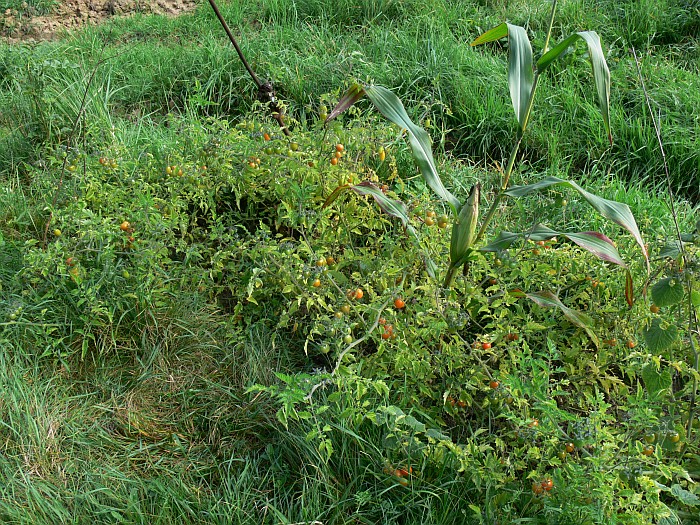 No, tak mám další zkušenost, divoká rajčata pěstuju letos poprvé. To že rajčata potřebují slunce ví každý. Ale neuvědomil jsem si, že ta divoká mají tak dlouhou vegetační dobu. Takže kompost kam jsem jich většinu vysadil a kde bujně rostla a nasadila tisíce zelených rajčátek se koncem léta dostal mimo dosah slunce. A v tu chvíli je tu malér - během pár dní je napadla plíseň. Rostliny bojujou statečně, nehynou, rostou dál a na nových přírůstcích kvetou ... ale bez slunce z toho nic nebude. Rajčata vysazená na místa kam svítí slunce jsou v pohodě, i když je u nás pod lesem na břehu řeky touto dobou už hodně vlhko.